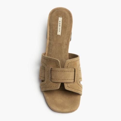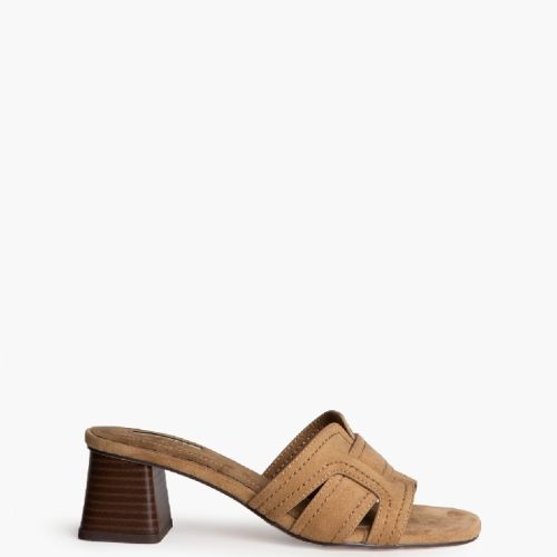 Sandalia de tacón bajo. Pala con corte simétrico y detalle de cosido.